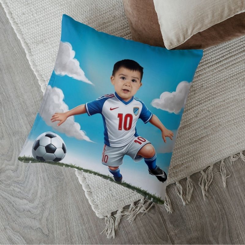 Personalizowana poduszka piłkarz z Twoim zdjęciem – idealny prezent dla małego fana piłki nożnej.Personalizowana poduszka piłkarz z Twoim zdjęciem – idealny prezent dla małego fana piłki nożnej.