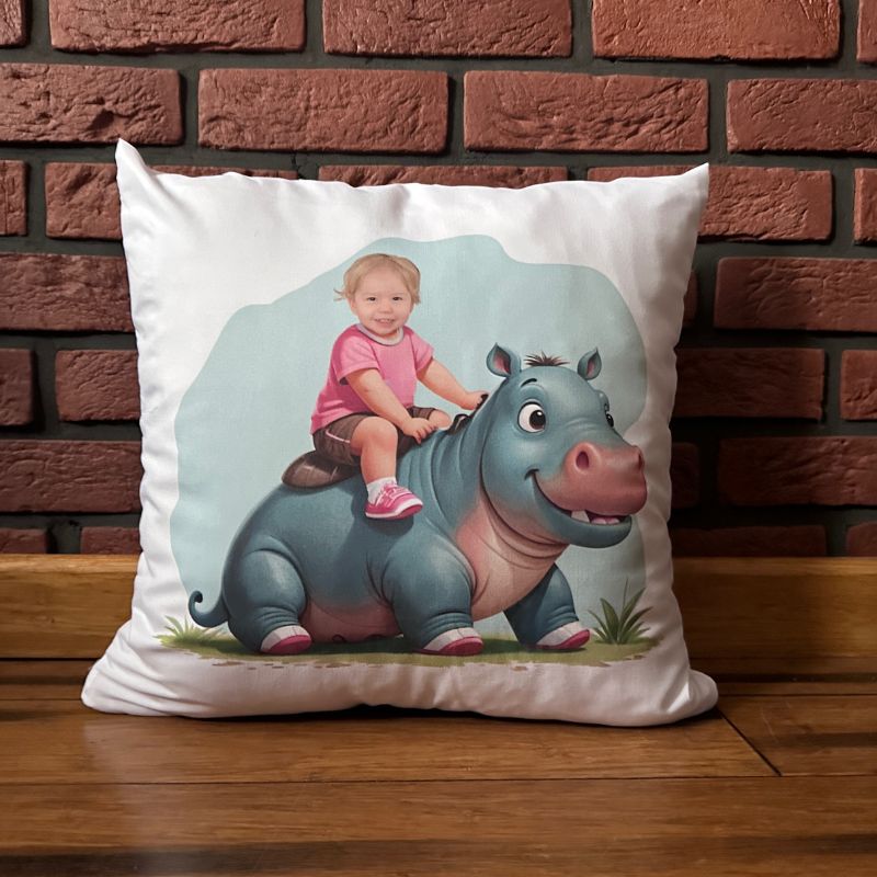 Hipopotam poduszka ze zdjęciem – urocza personalizowana dekoracja z motywem hipopotama. Idealny prezent na każdą okazję dla dzieci i dorosłych.