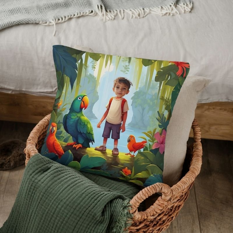 personalizowana poduszka kapibara w dżungli – prezent ze zdjęciem dzieckapersonalizowana poduszka kapibara w dżungli – prezent ze zdjęciem dziecka