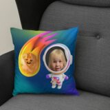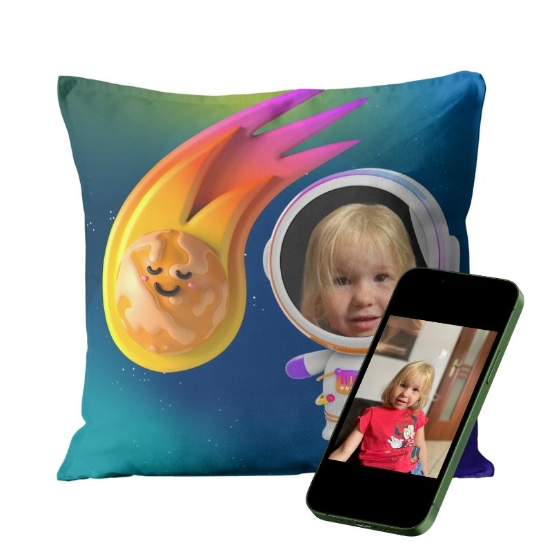 Nasza personalizowana poduszka z serii „Kosmos” to doskonały wybór! Dzięki możliwości dodania twarzy z przesłanego zdjęcia, stworzysz unikalny i niezapomniany prezent, który zachwyci każdego małego odkrywcę kosmosu.