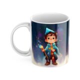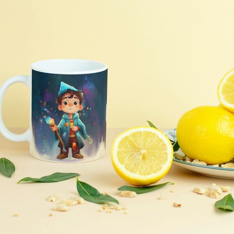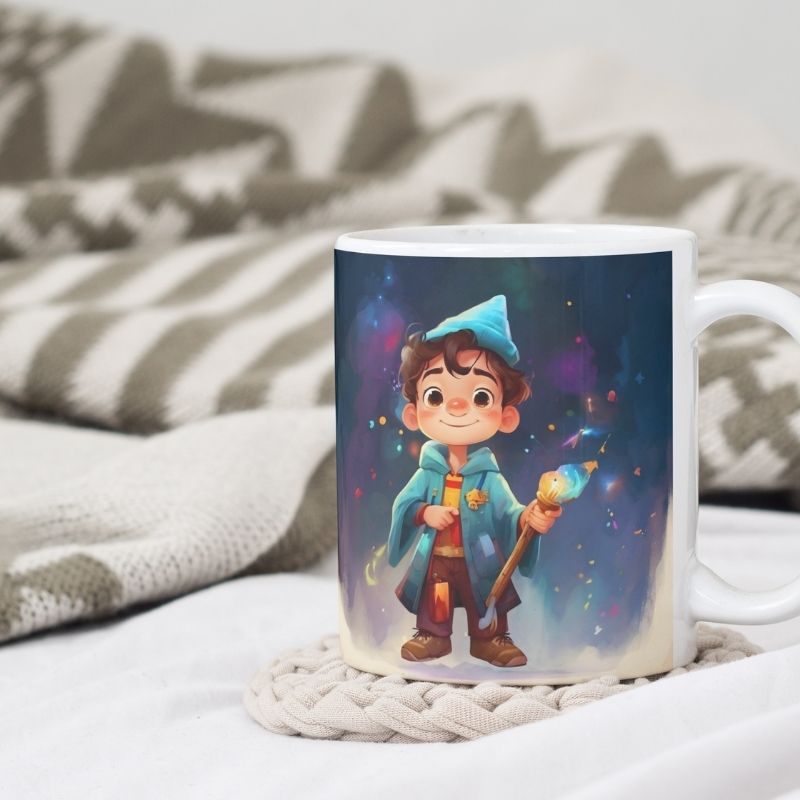 Grafika na kubku przedstawia dziecko jako czarodzieja. A co jest najlepsze? Ten odważny bohater może mieć imię Twojego dziecka! Wyobraź sobie radość na jej twarzy, gdy zobaczy swój podpisany kubek z uroczym czarodziejem, gotowa na magiczną przygodę! Kubek jest podpisany imieniem właściciela, co czyni go jeszcze bardziej wyjątkowym.. To idealny sposób, aby pobudzić wyobraźnię i marzenia o dalekich podróżach.