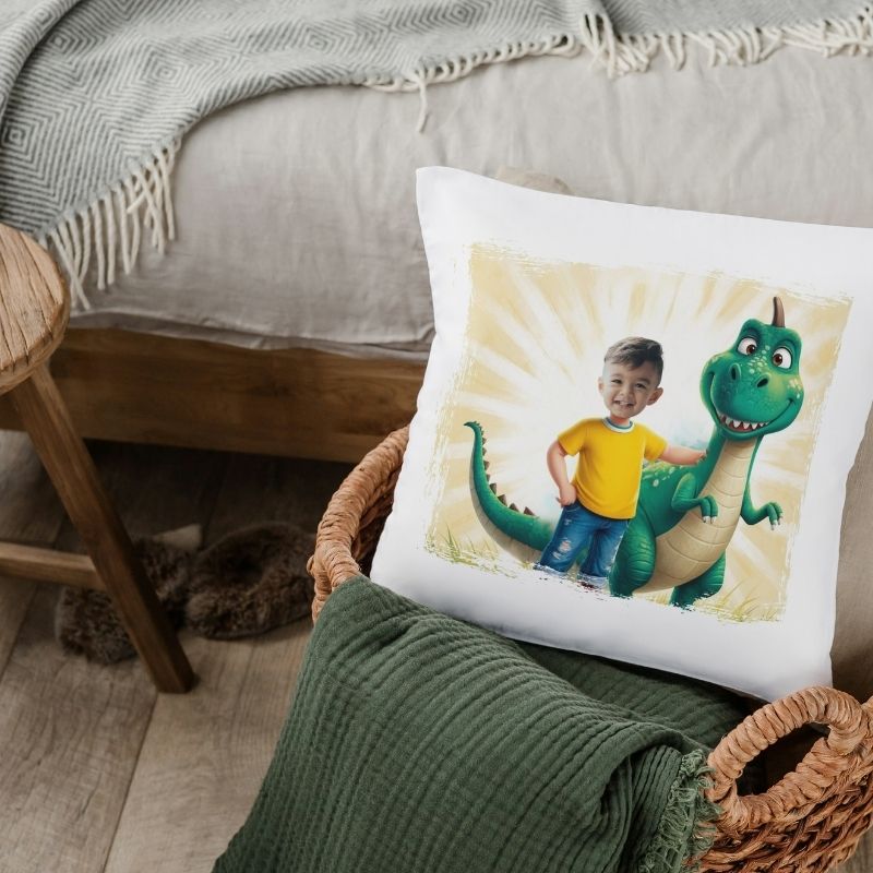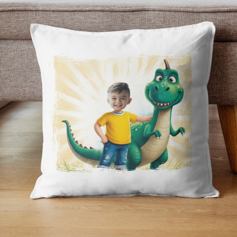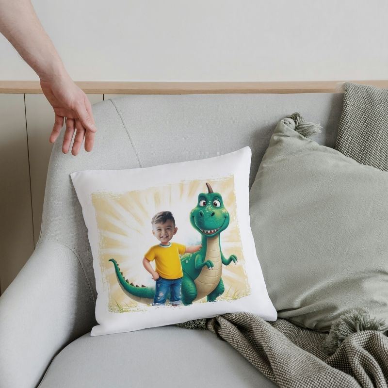 personalizowana poduszka z nadrukiem, poduszka z bajkową grafiką, pluszowa poduszka 45x45, poduszka z własnym zdjęciem, wyjątkowy prezent na każdą okazję, miękka poduszka dekoracyjna, poduszka na zamówienie, poduszka z kolorowym nadrukiem, trwała poduszka sublimacyjna, poduszka z kulką silikonową, poduszka dla dzieci z grafiką, poduszka personalizowana na prezent, poduszka z zamkiem do prania, szybka realizacja poduszki DINOZAUR