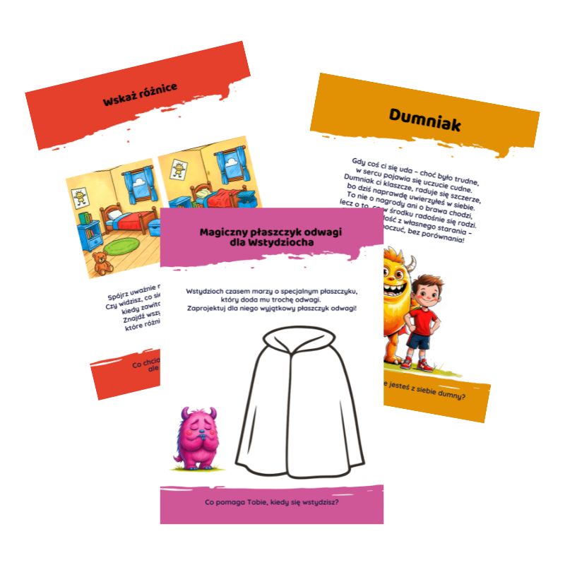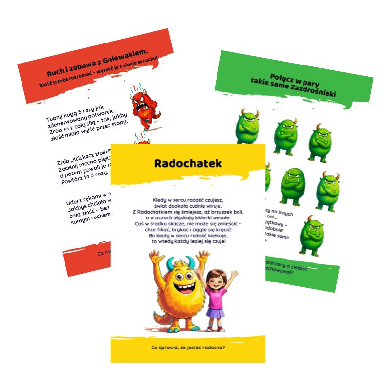 Kolorowy e-book o emocjach z 13 potworkami, który wspiera dzieci w wieku 3–6 lat w nazywaniu i rozumieniu uczuć.