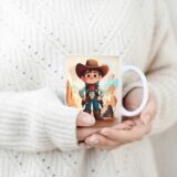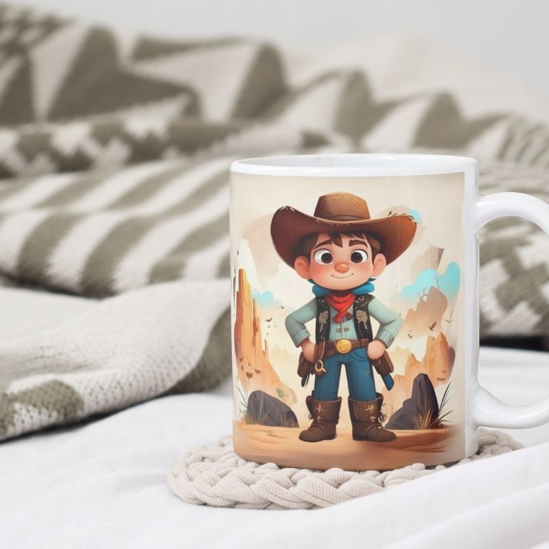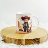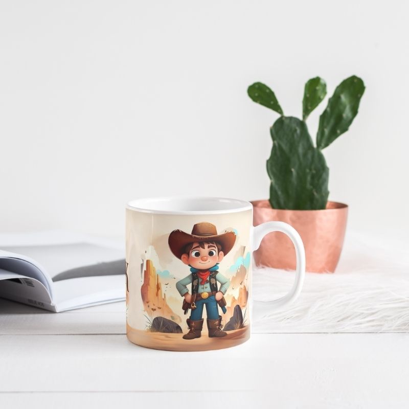 Grafika na kubku przedstawia dziecko jako Kowboja w stylowym, kowbojskim kapeluszu. A co jest najlepsze? Kubek jest podpisany imieniem właściciela, co czyni go jeszcze bardziej wyjątkowym.. To idealny sposób, aby pobudzić wyobraźnię i marzenia o dalekich podróżach.