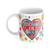 Każda Babcia zasługuje na wyjątkowy prezent, który wyrazi, jak bardzo ją kochamy. Kubek Laurka Serce Kocham Cię Babciu to nie tylko praktyczny przedmiot codziennego użytku, ale także pełen emocji sposób, by wyrazić swoje uczucia. Kolorowa grafika serca, otoczona radosnymi rysunkami kwiatów, gwiazdek i słońca, przywołuje na myśl dziecięcą laurkę – symbol ciepła, miłości i wdzięczności.
