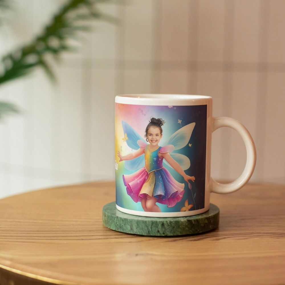 ✔ Uniwersalny kubek z tęczową wróżką i zdjęciem dla dziewczynek w różnym wieku