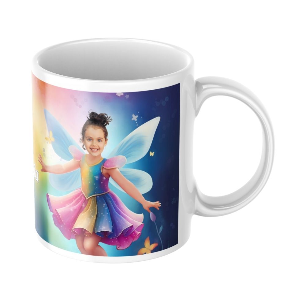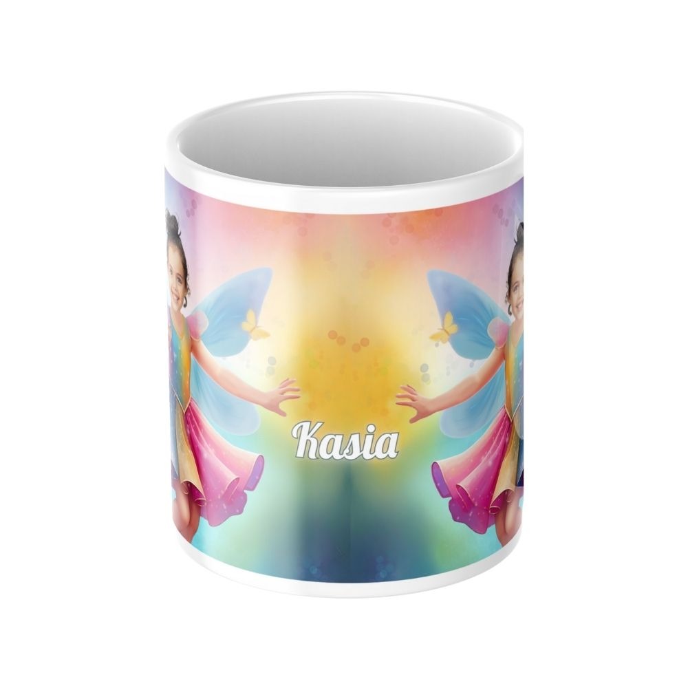 Personalizowany kubek Tęczowa Wróżka ze zdjęciem dziecka. Bajkowy, kolorowy i pełen magii – idealny prezent dla małej miłośniczki wróżek. Wysyłka 24h po akceptacji projektu.