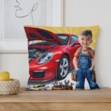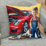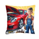 Poduszka o wymiarach 45×45 cm wykonana jest z miękkiej mikrofibry, co sprawia, że jest miła i przyjemna w dotyku. Na poduszce znajduje się jednostronny nadruk przedstawiający postać mechanika, która może mieć twarz Twojego dziecka! Wystarczy, że wgrasz zdjęcie przed dodaniem produktu do koszyka, a my zajmiemy się resztą.
