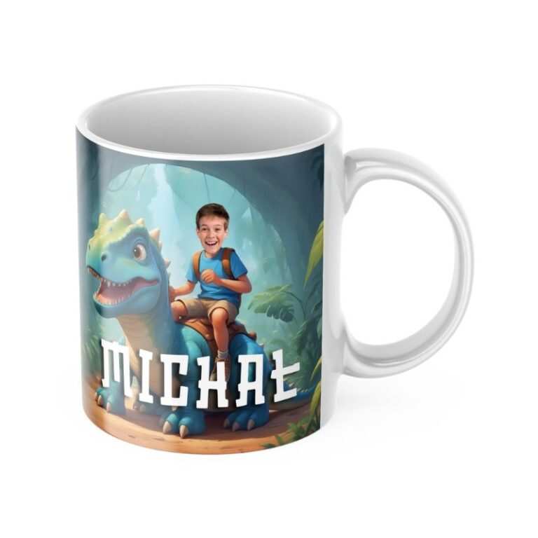 Personalizowany Kubek z Bajkową Grafiką i TWOIM ZDJĘCIEM – Idealny Prezent dla KAŻDEGO FANA DINOZAURÓW