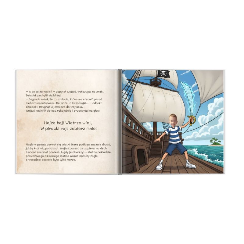 Personalizowana książka dla dzieci „Piracki rejs” – bohaterem opowieści jest dziecko, którego imię i zdjęcie znajdzie się w książce.