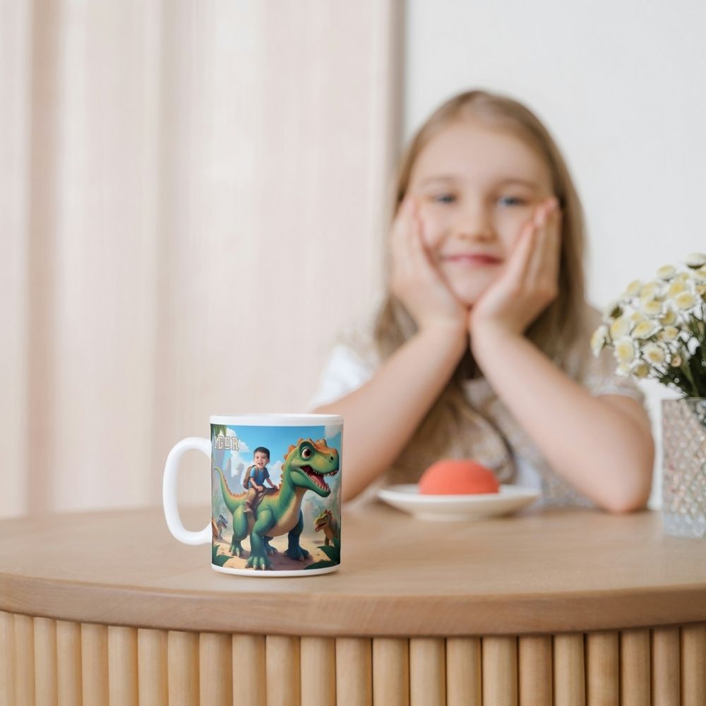 PERSONALIZOWANY KUBEK DINOZAURY ZE ZDJĘCIEM – WYJĄTKOWY PREZENT DLA MAŁEGO FANATYKA PREHISTORYCZNEGO ŚWIATA