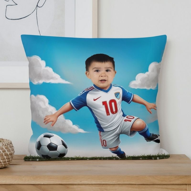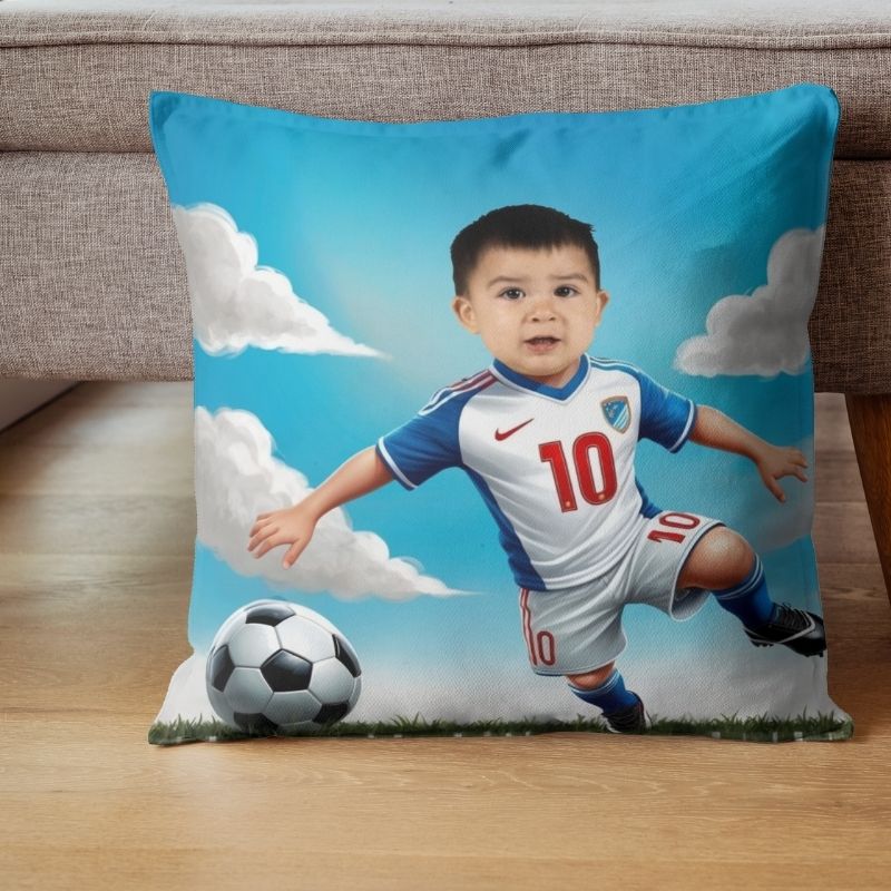 Przedstawiamy personalizowaną poduszkę ze zdjęciem z serii „Piłkarskie Marzenia”! To nie jest zwykła poduszka – to magiczny prezent, który zamieni każdego w piłkarskiego bohatera. Wystarczy, że prześlesz nam zdjęcie, a my połączymy twarz z przesłanego zdjęcia z piłkarską grafiką. Efekt? Twoje dziecko, partner, przyjaciel czy nawet Ty sam – wszyscy mogą poczuć się jak Ronaldo, Messi czy Lewandowski!