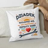 Poduszka dla dziadka Dziadek najlepiej wie jak naprawić zepsuty dzień to wyjątkowy prezent, który wyrazi wdzięczność i miłość dla ukochanego dziadka. Napis na poduszce jest pełen ciepła i emocji, a grafika podkreśla unikalny charakter tego upominku. To doskonały wybór na Dzień Dziadka lub jako prezent na każdą okazję, który wywoła uśmiech na twarzy.