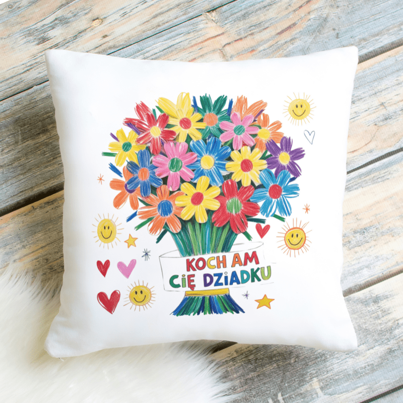 Poduszka laurka dla Dziadka kwiaty – personalizowany prezent na Dzień Dziadka