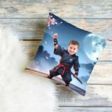 ✔️ Poduszka ze zdjęciem dziecka ninja tworzy bajkowy świat, w którym dziecko gra główną rolę