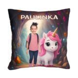 Personalizowana poduszka z grafiką z książki „W Krainie Jednorożców”