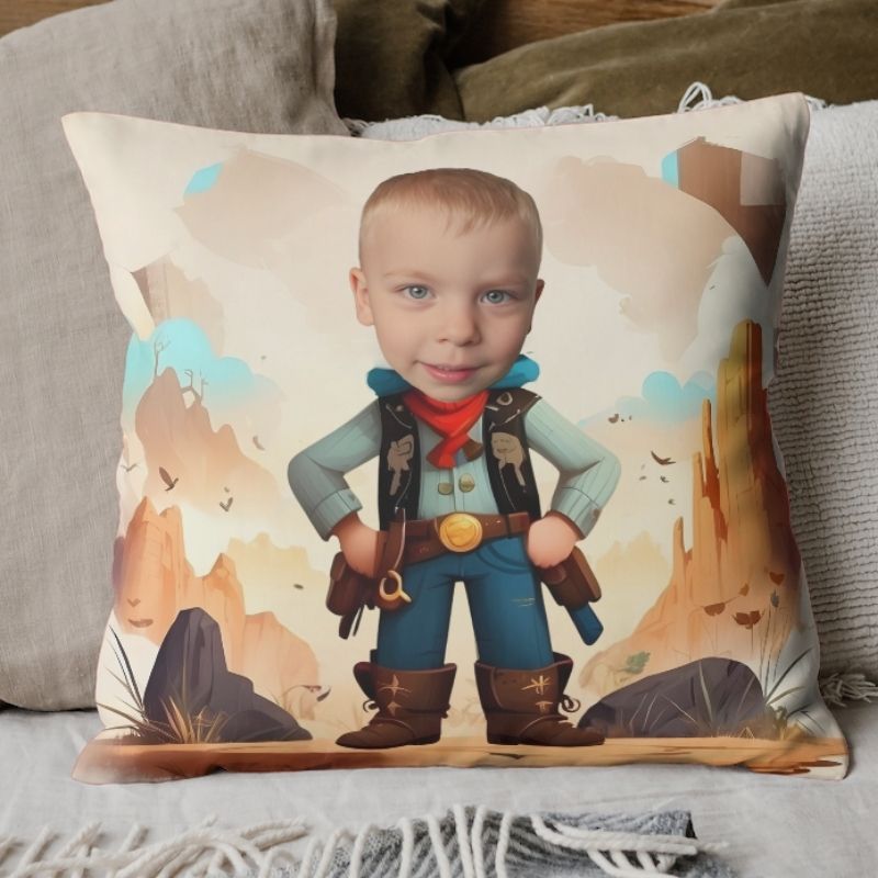 Personalizacja to nasz konik– wyślij nam zdjęcie swojego dziecka, a my zadbamy o to, by jego twarz dumnie ozdobiła poduszkę, tworząc niepowtarzalnego bohatera preri. Każda poduszka to unikatowy egzemplarz poszukiwacza przygód!