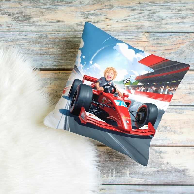 PODUSZKA ZE ZDJĘCIEM KIEROWCA WYŚCIGOWY – RADOŚĆ DLA MAŁYCH FANÓW FORMUŁY 1