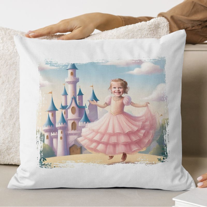 Bajkowa poduszka księżniczka dla dziewczynki – personalizowany prezent, który zamienia Twoje dziecko w bohaterkę bajki i przeniesie w sen jak z bajki.