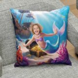 Wyobraź sobie, że Twoje dziecko trafia do świata podwodnych przygód, gdzie czeka na nie skrzynia pełna złota, wrak statku i bajkowa sceneria. Poduszka ze zdjęciem syrenka i skarb to nie tylko ozdoba dziecięcego pokoju – to bajkowa poduszka, która staje się częścią magicznej opowieści, w której główną rolę gra Twoje dziecko.