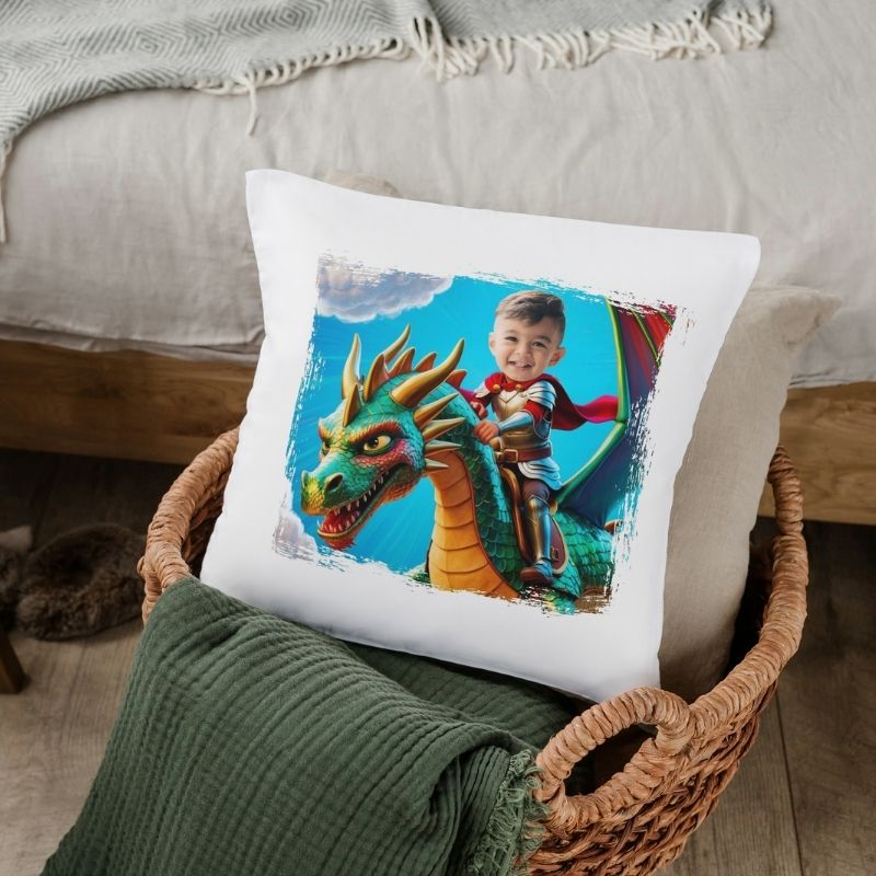 Poduszka z własnym zdjęciem o wymiarach 45×45 cm lub 40×40 cm to doskonały sposób na spersonalizowanie wnętrza lub stworzenie wyjątkowego prezentu. Wykonana z miękkiego pluszu, wypełniona kulką silikonową, jest wygodna i łatwa w pielęgnacji – można ją prać w pralce. Nadruk metodą sublimacji gwarantuje trwałość i żywe kolory. Możliwość połączenia bajkowej grafiki z własnym zdjęciem sprawia, że każda poduszka staje się unikatowa. Idealny wybór na prezent lub ozdobę domu!