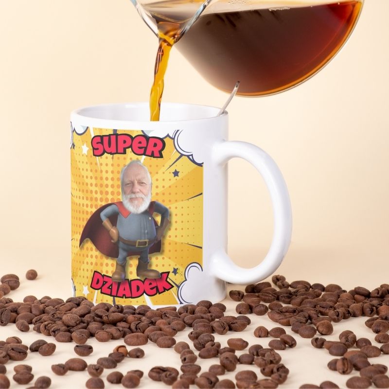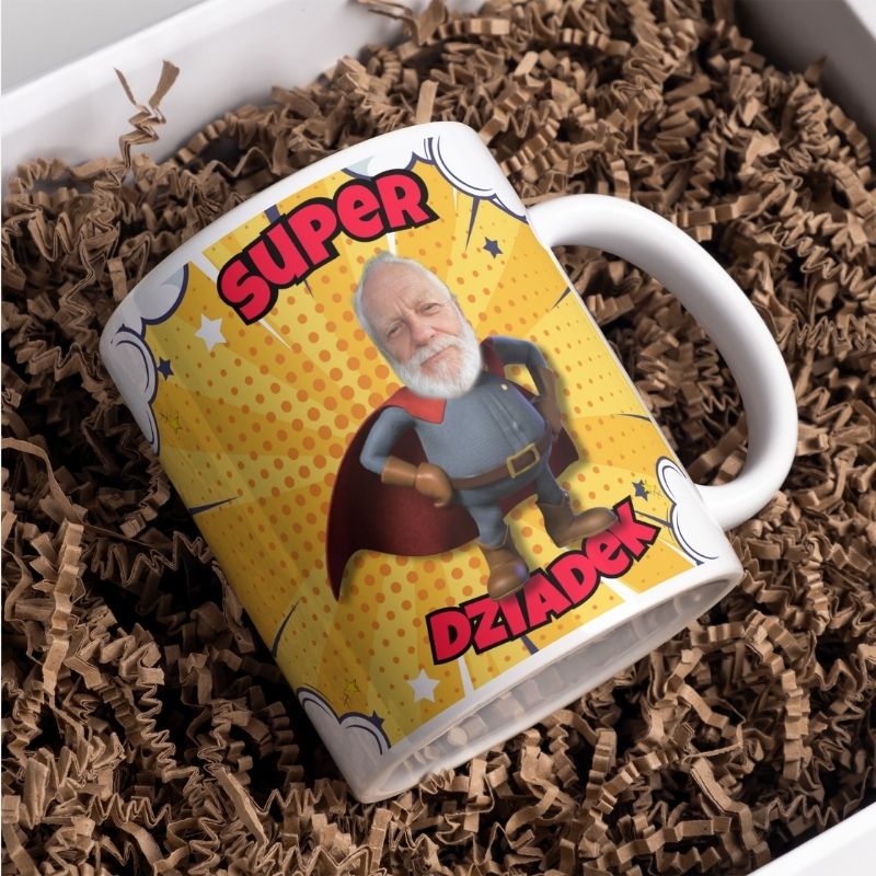 Ten kubek to nie byle jaki gadżet, to prawdziwy artefakt mocy. Wyobraź sobie, jak dziadek z uśmiechem na twarzy chwyta swój nowy ulubiony kubek, na którym widnieje on sam – w pełnym rynsztunku superbohatera! Nasza grafika to magia, która przekształca zwykłe zdjęcie w komiksowy majstersztyk, gdzie Twój dziadek jest gwiazdą swojej superbohaterskiej sagi.